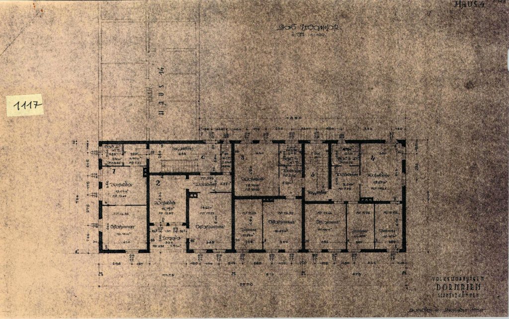 1117 – Vorarlberg, Dornbirn, Schmelzhütten; Volkswohnungen, Haus Nr.4, Erdgeschoß, Lichtpause