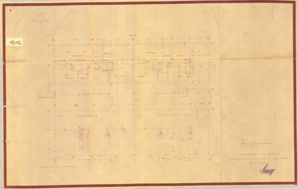 1212 – Lienz, VWG, Kellergeschoß, Balkenlage über Obergeschoss, Lichtpause rot