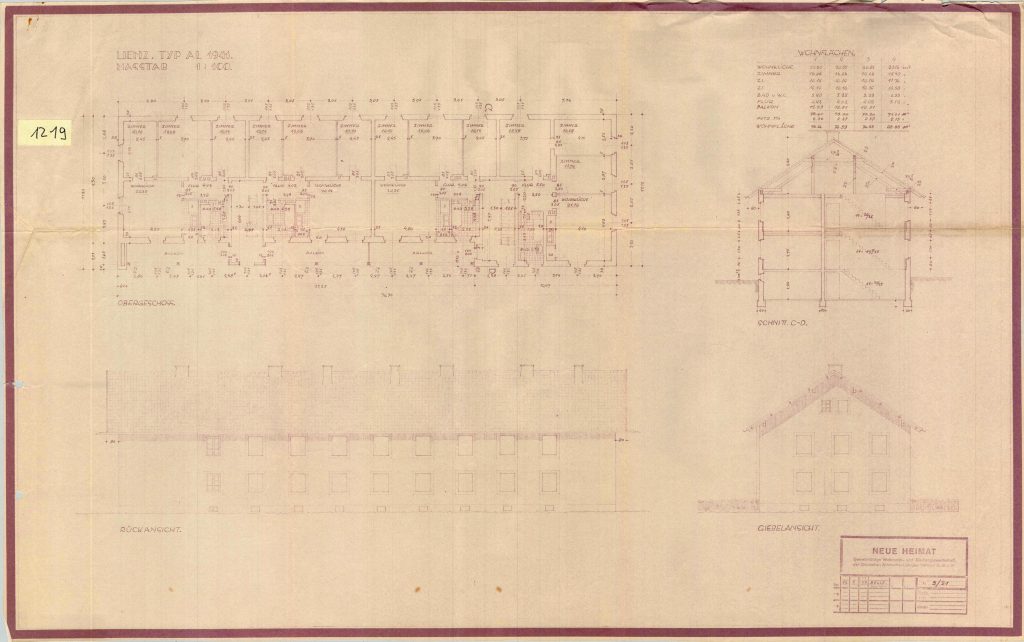 1219 – Lienz, VWG, Obergeschoß, Rückansicht, Schnitt und Giebelansicht